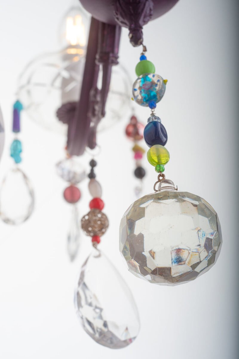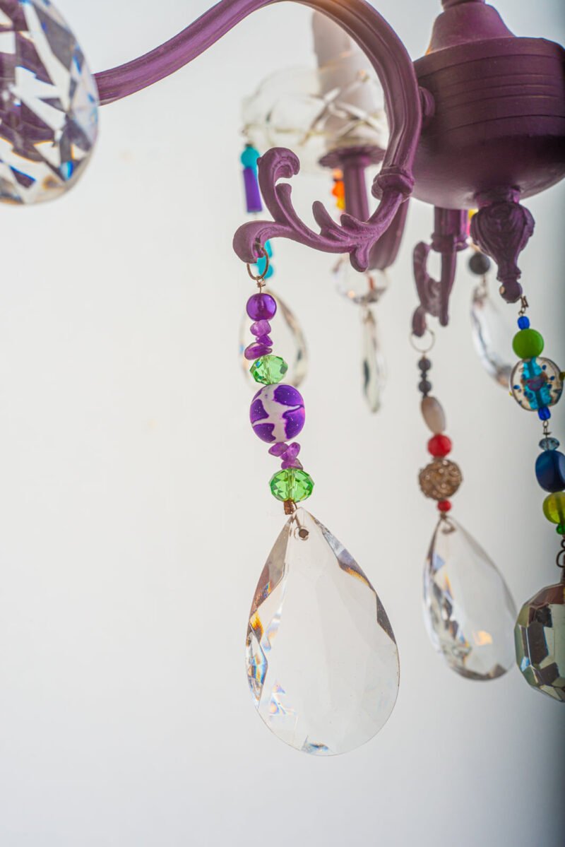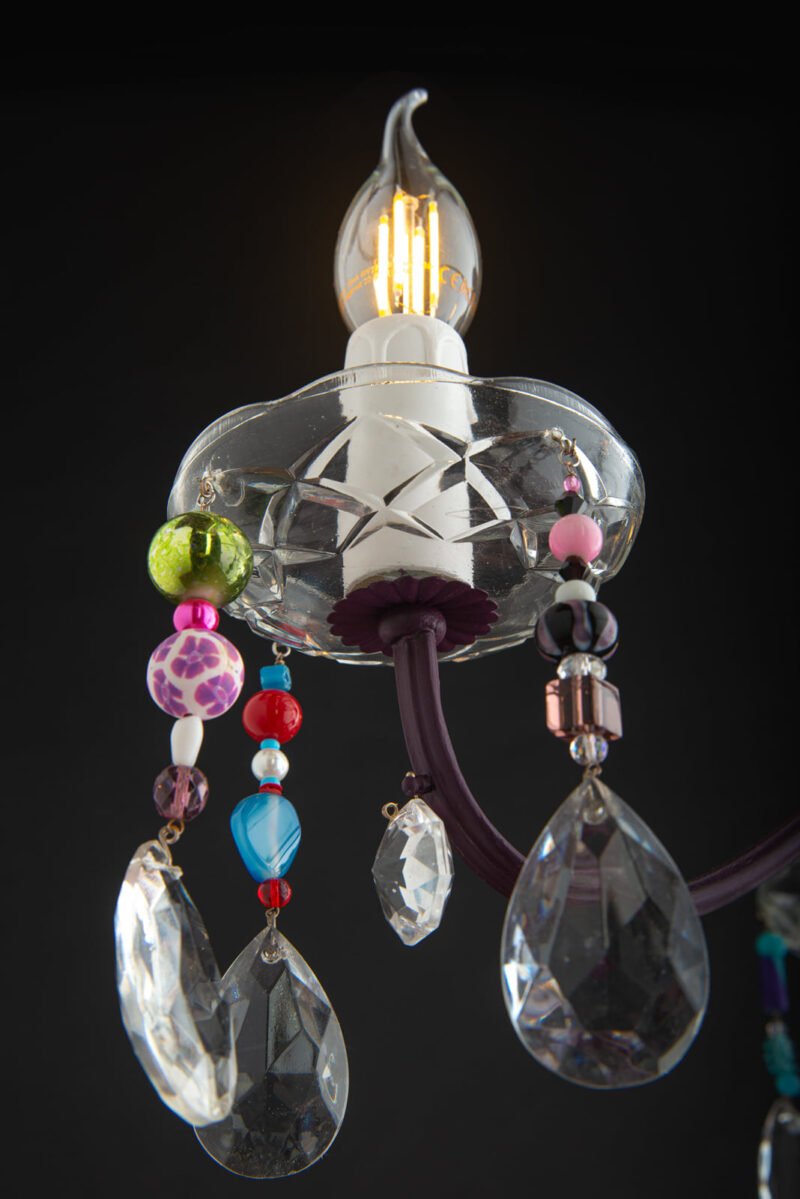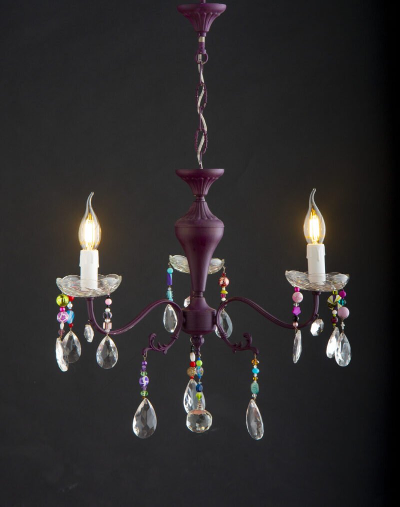– Lampadario a 3 bracci in lega leggera cablato e dipinto a mano con colori all’acqua!